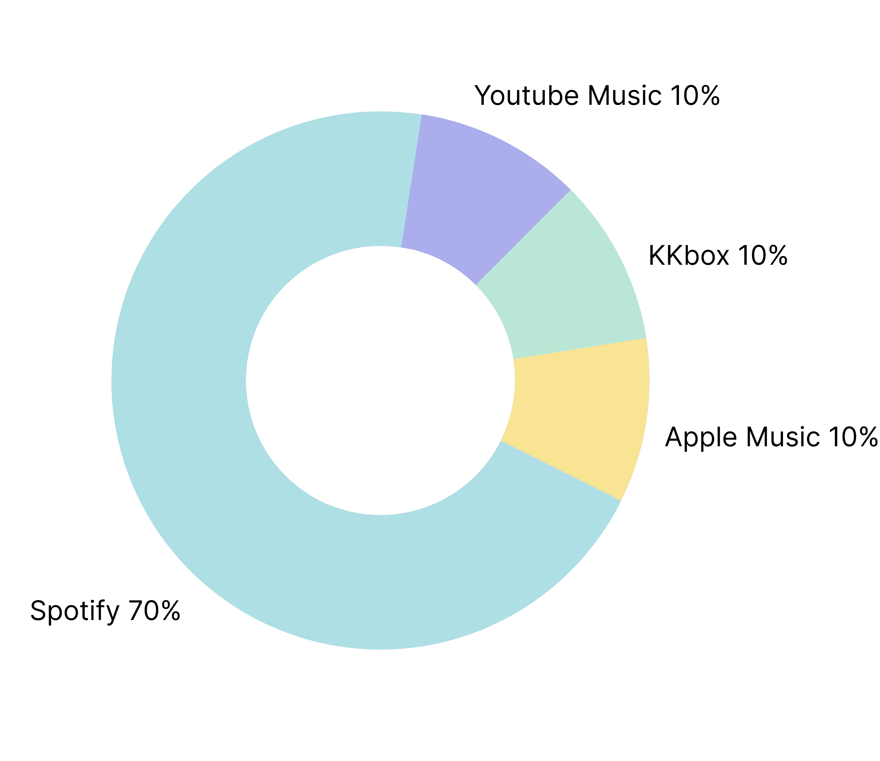 The pie chart titled music streaming platform usage shows the distribution of usage among different music streaming platforms