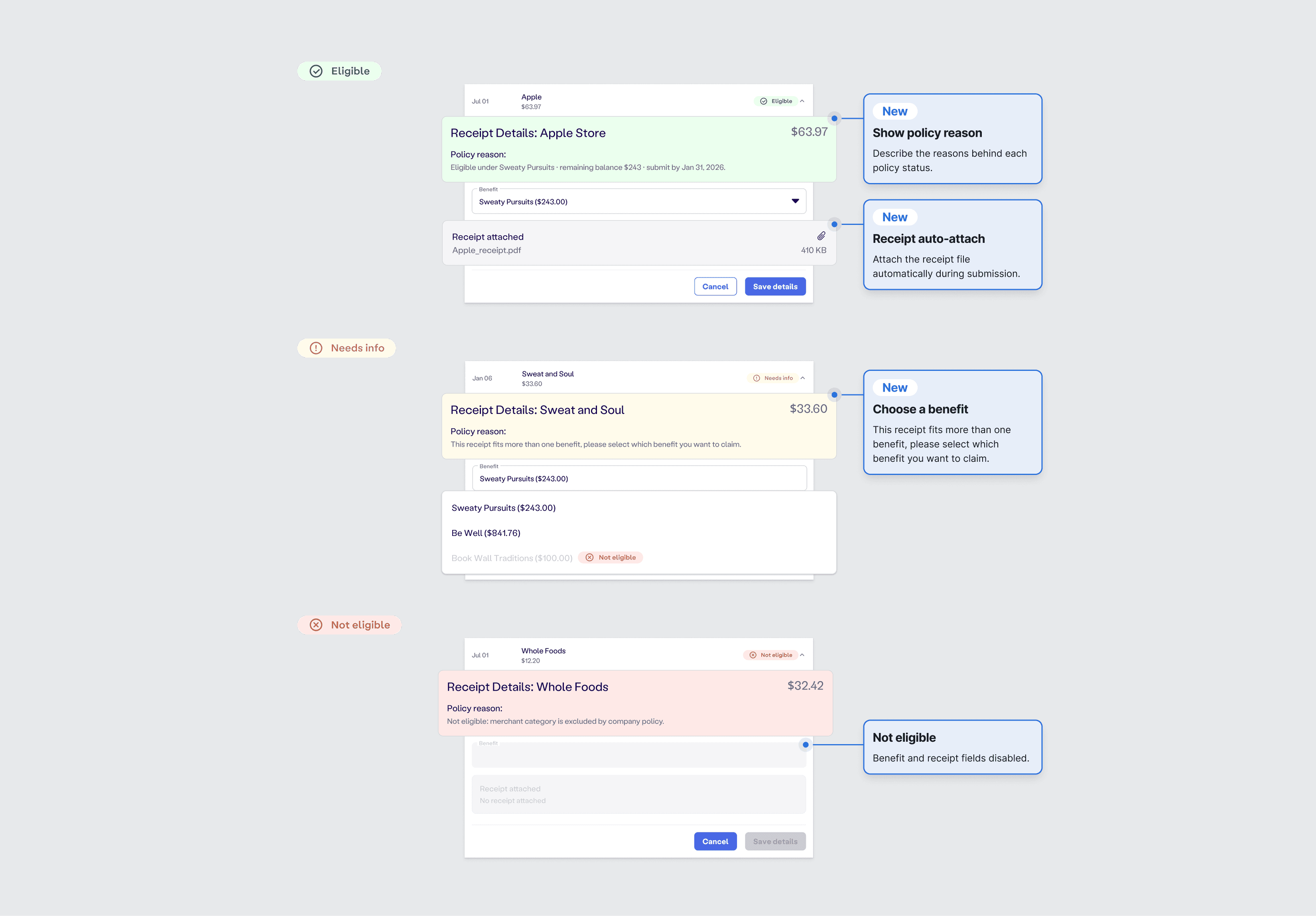 Streamlined the end-to-end benefit claiming journey, from reimbursements to benefit product discovery.