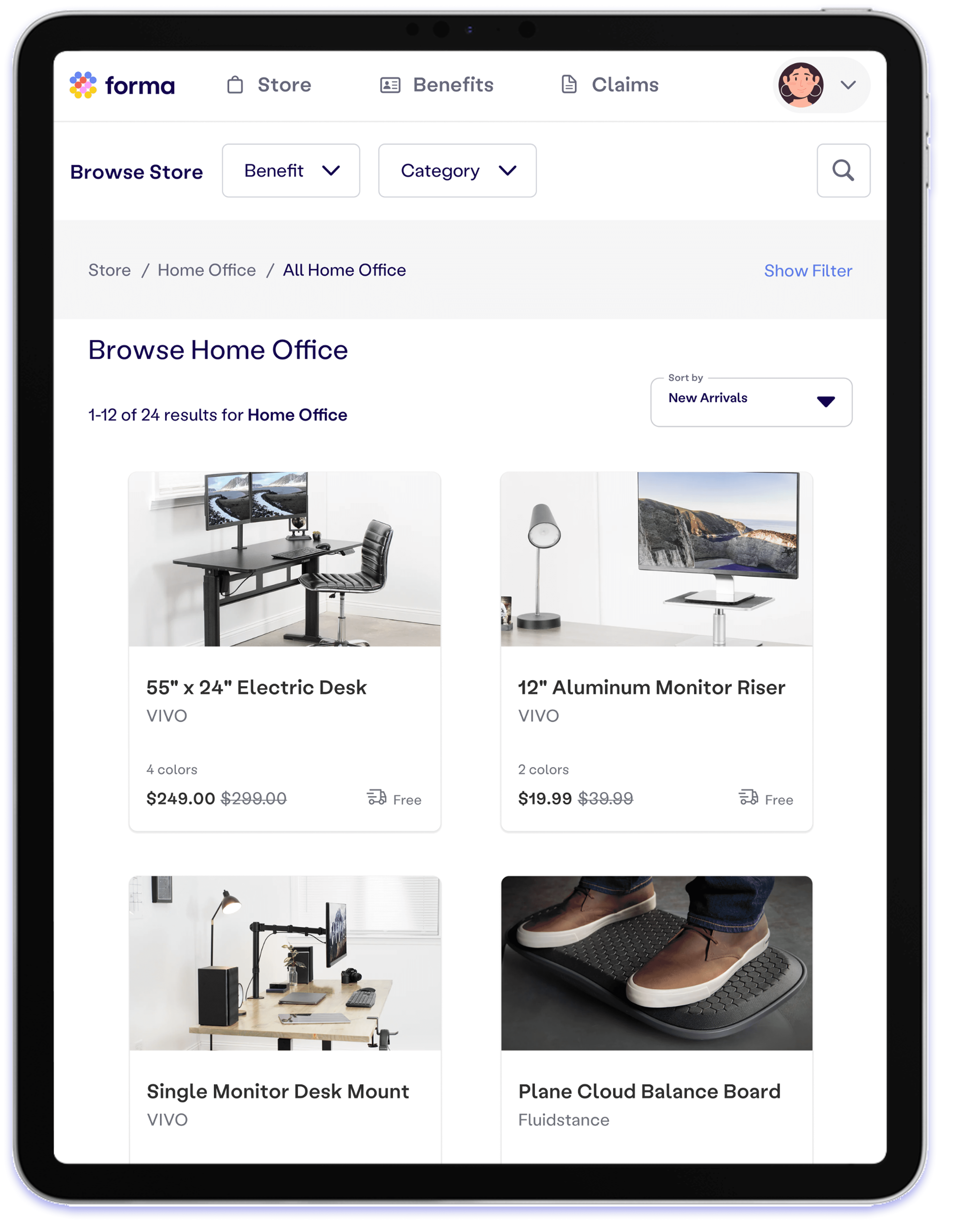 Improved mobile and tablet experience by designing responsiveness, ensuring adherence to Forma design guidelines, and adding a dropdown filter for better benefit sorting