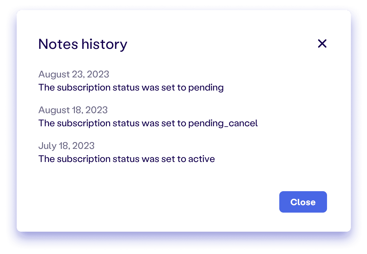 While collaborating with the PM on a feature to improve subscription adjustments, I proactively led the design of the Subscription Notes system—an initiative informed by support ticket data, user behavior analytics, and interviews with our internal support team and vendor specialists.